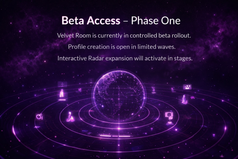 Welcome to Velvet Room, the public headquarters of a new era in social interaction. Built on principles of privacy, intentional connection, and controlled growth, Velvet Room is more than an app – it's an ecosystem. Discover how Radar facilitates presence-based interactions and prepare to enter our staged beta rollout.